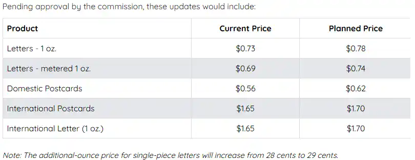 The U.S. Postal Service has announced new pricing adjustments scheduled to take effect on July 13, 2025.
